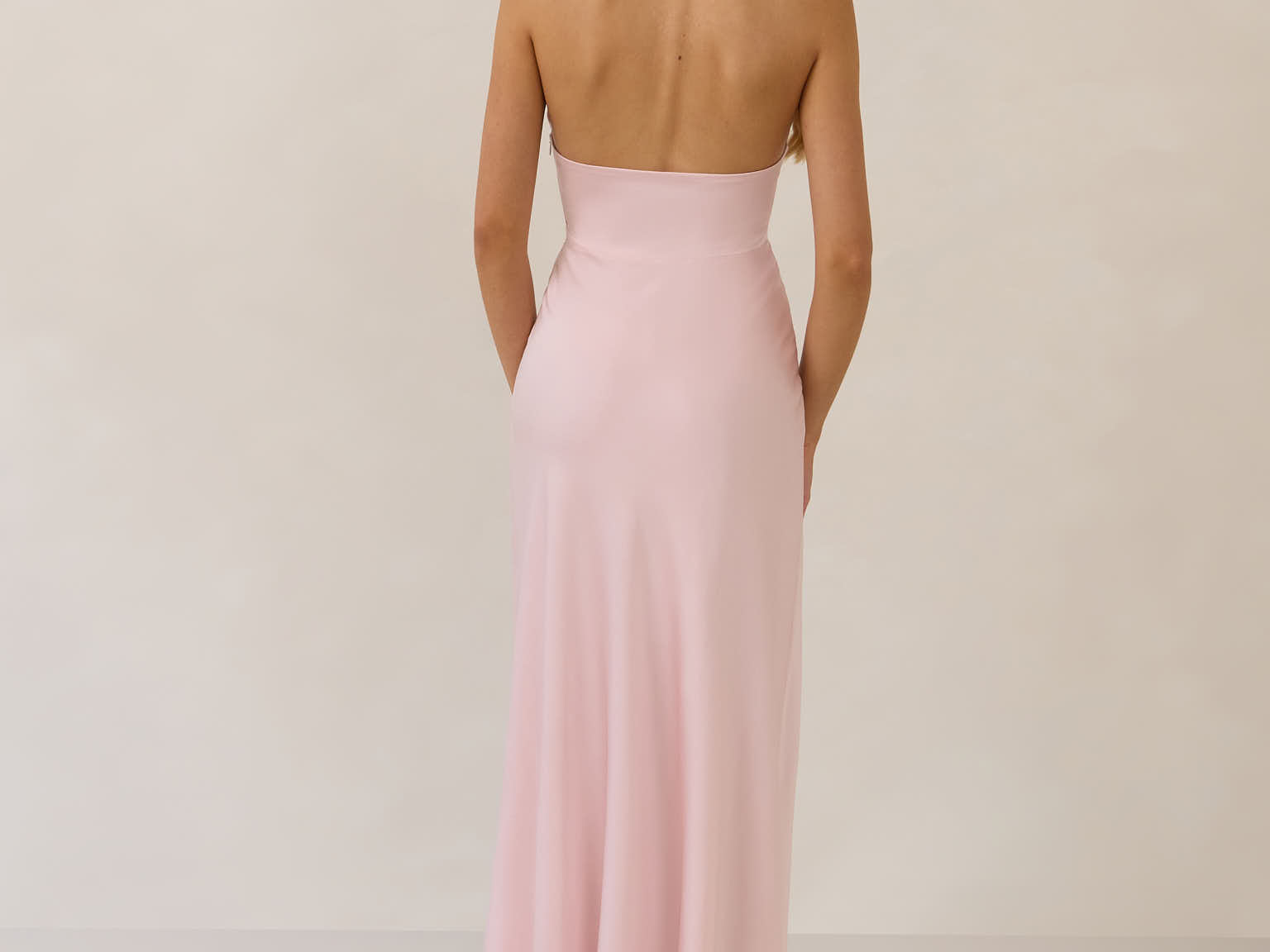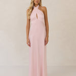The Emery dress redefines timeless elegance with a contemporary twist. Crafted from our signature bubble satin, this full-length dress features a flattering cross-front halter neckline, creating soft drapes and a delicate keyhole detail for a touch of allure. The bias-cut skirt gracefully skims the body, ensuring comfort and a flawless silhouette that you'll want to wear repeatedly.