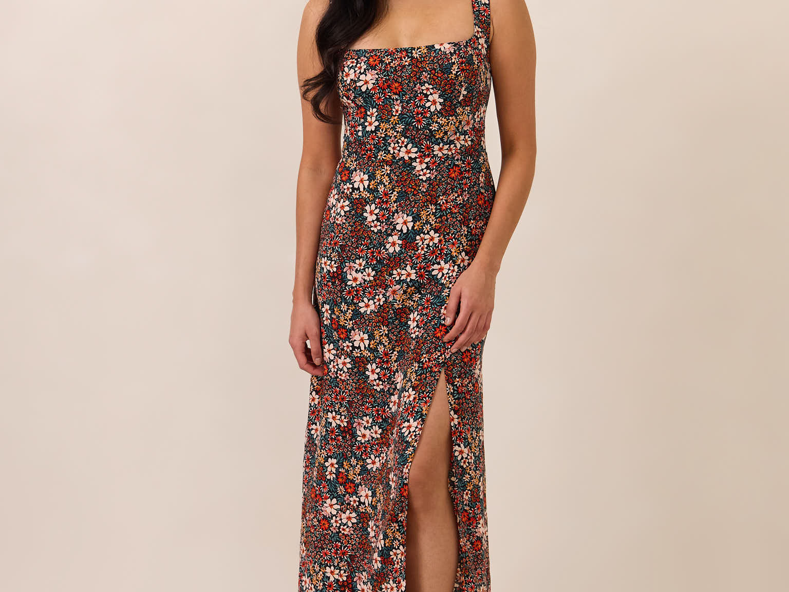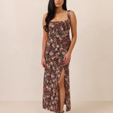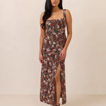 Effortlessly chic, this dress is perfect for guesting and special occasions alike. Designed with flattering thick straps and an easy-fitting A-line midi skirt that flows beautifully, it creates a refined silhouette with effortless movement. A front slit adds a modern touch, making it a timeless choice for any event.