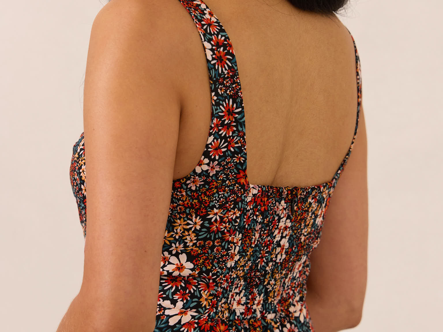 - A shirred back allows for flexibility with sizing. If you're between two sizes, choose the lower size.