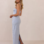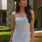 The Lenore Dress is a lesson in effortless elegance. A straight, tea-length skirt with a back slit creates a refined yet effortless look, while the adjustable straps and bodice lining ensure a comfortable, flattering fit.