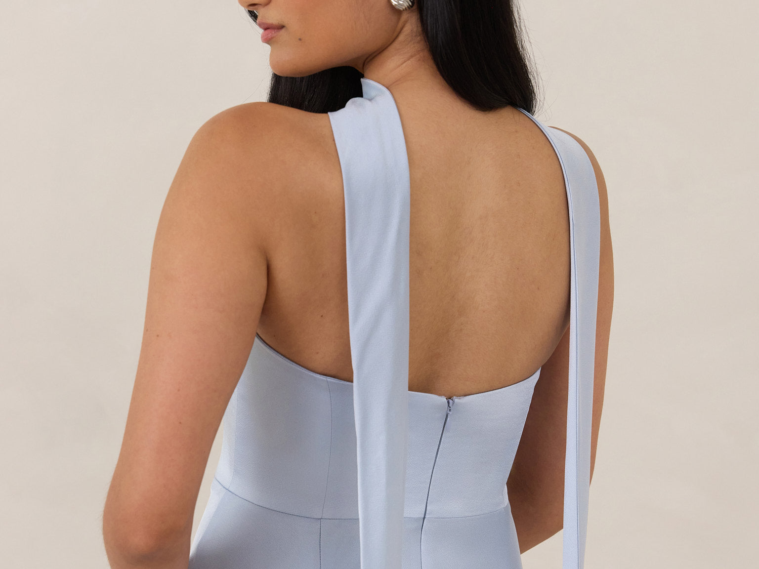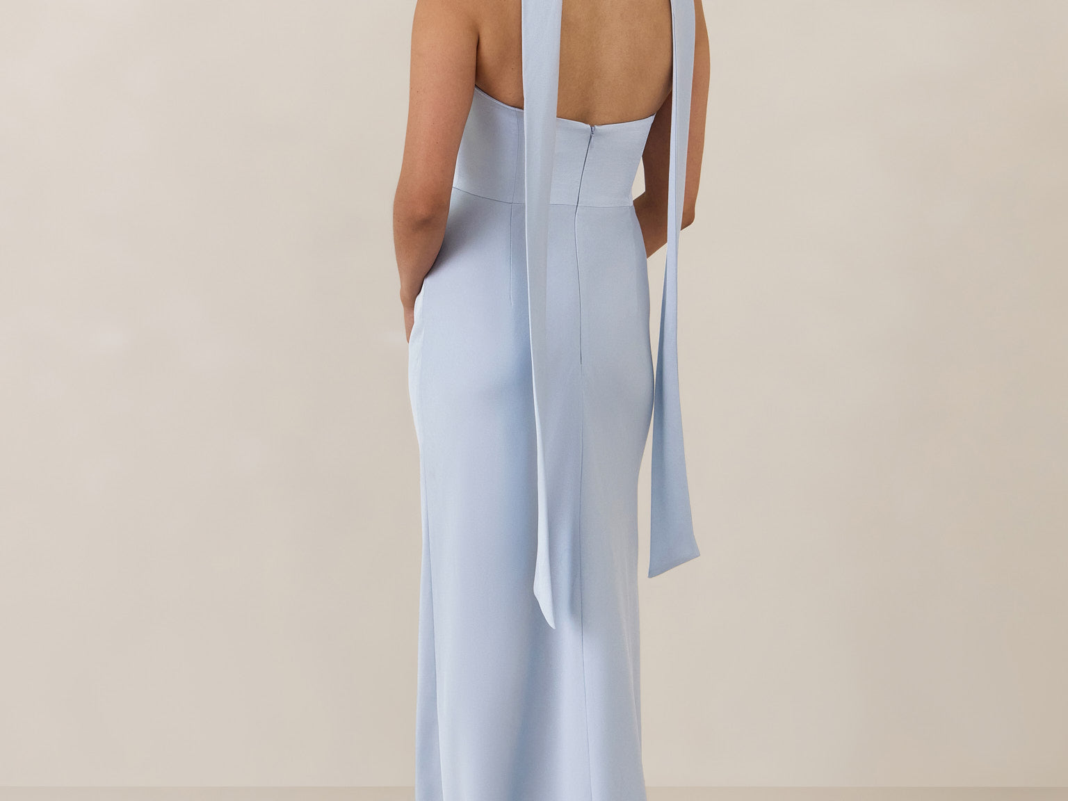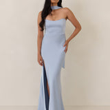 With an emphasis on the details, this satin maxi dress is cut on the bias for an ultra-flattering drape that skims the body perfectly. A subtle, hip-grazing slit adds movement and a touch of leg, while removable straps offer versatility—wear it strapless for a sleek look or with straps for added support and structure.