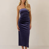 Meet your plus-one for every holiday and winter event. The Morgan dress is a strapless, body-skimming velvet dress that knows how to make an entrance.