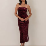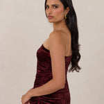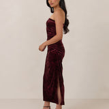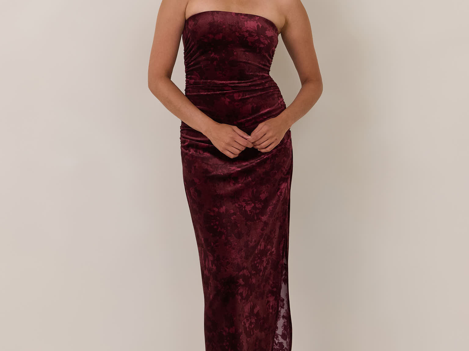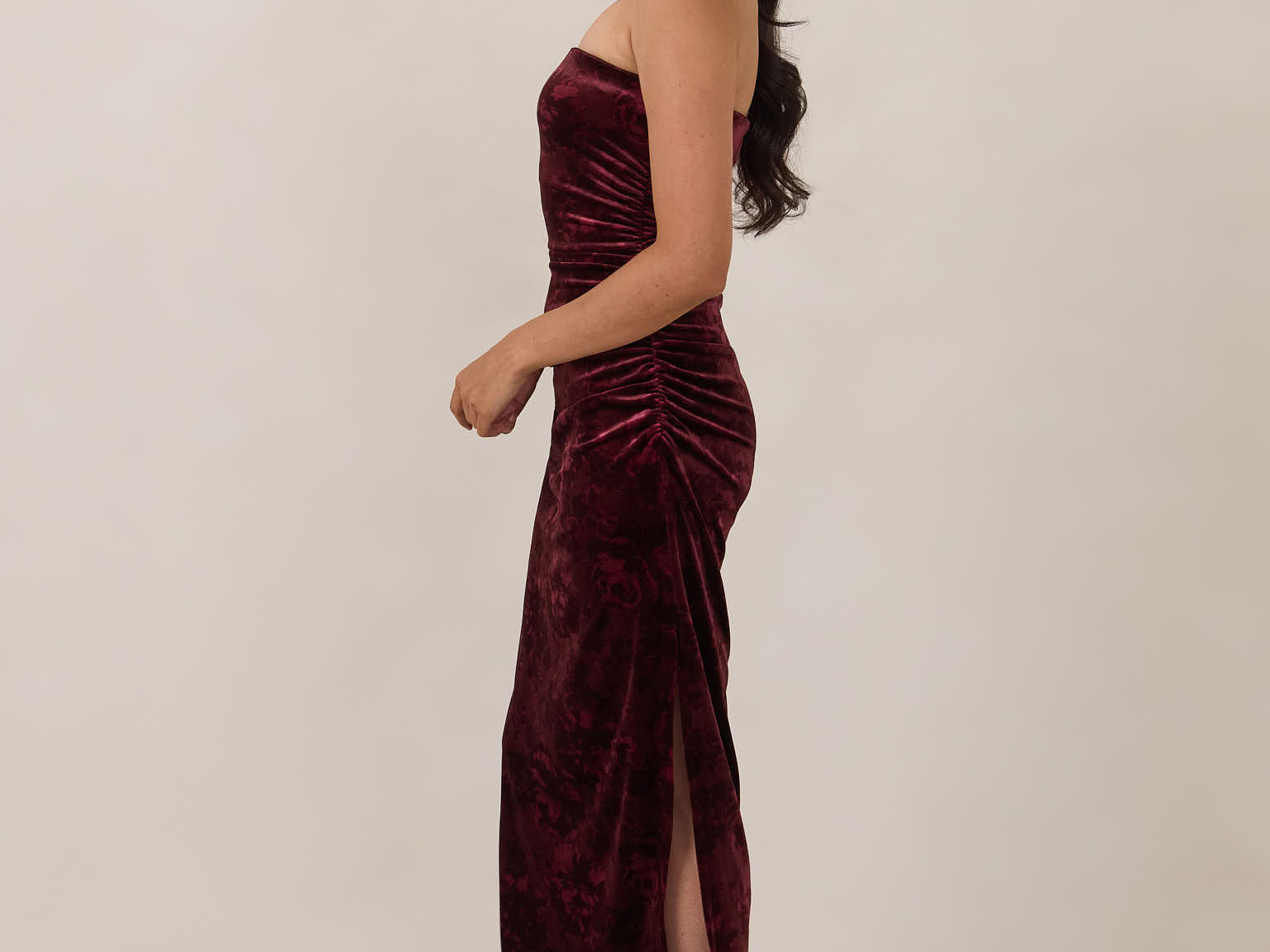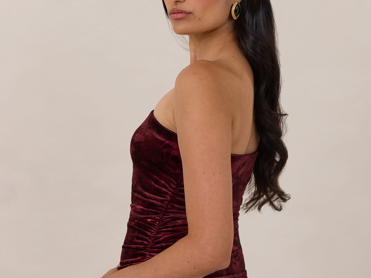 Meet your plus-one for every holiday and winter event. The Morgan dress is a strapless, body-skimming velvet dress that knows how to make an entrance.