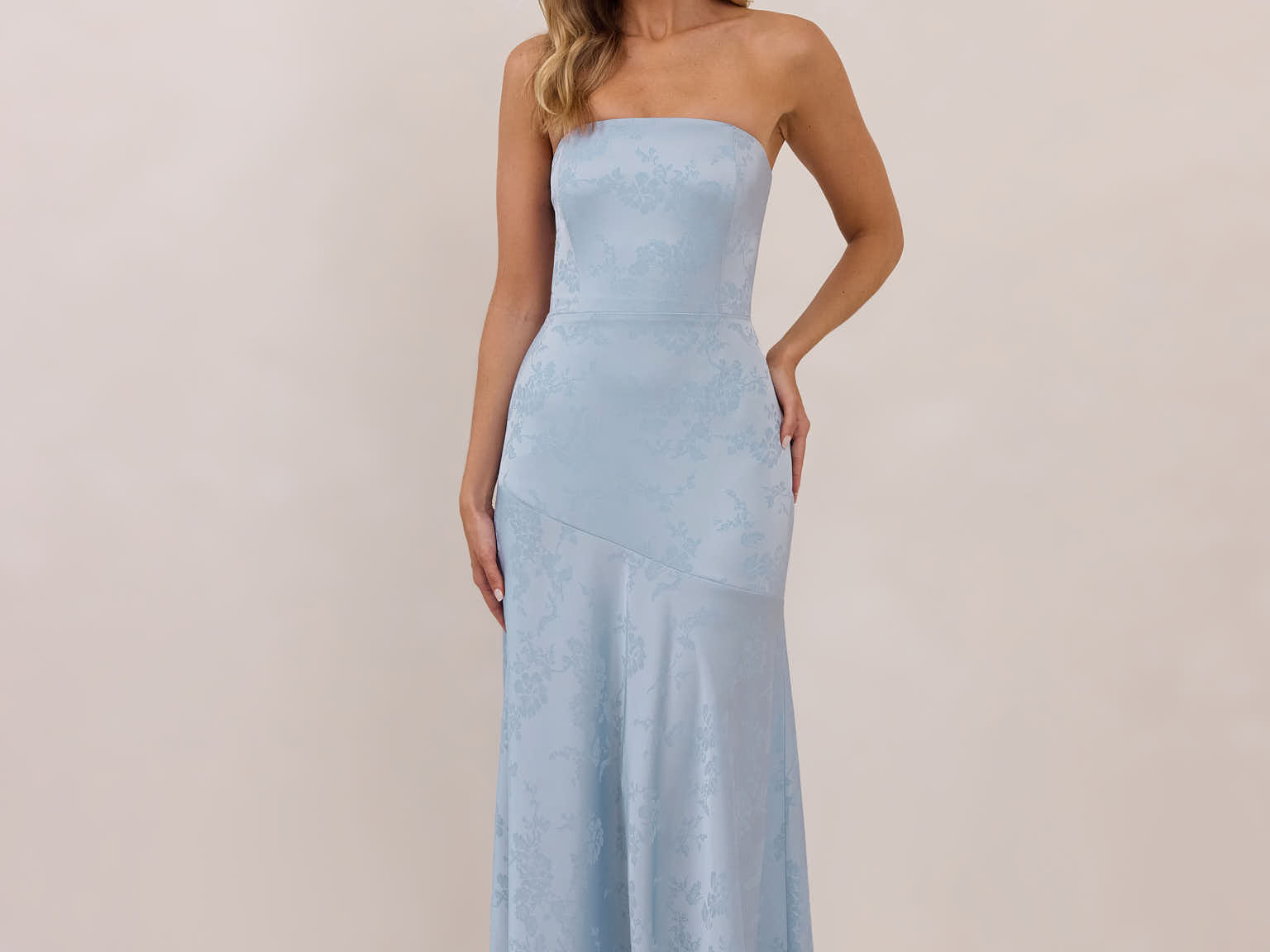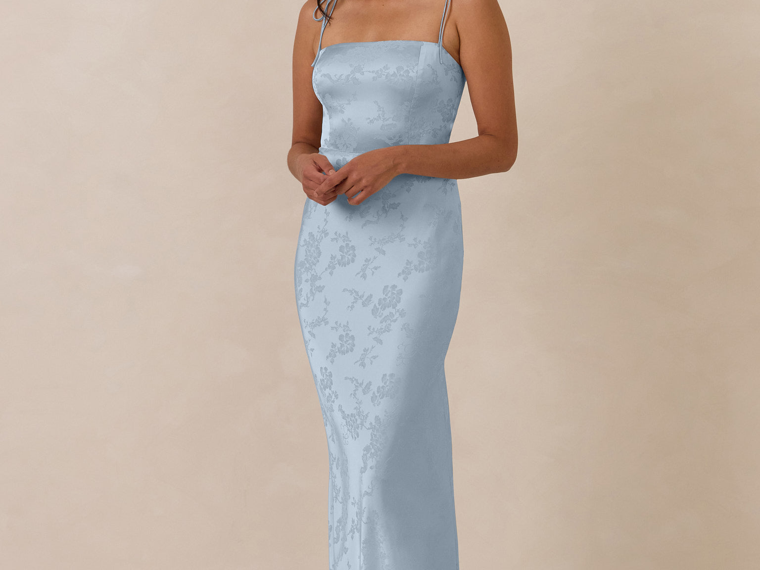 Our Jacquard is a medium-weight fabric that offers a structured feel and elegant floral patterns. It's blended with satin for a subtle sheen and soft, luxurious finish. This fabric holds its shape beautifully and drapes gracefully for a polished, tailored look, with very little stretch.