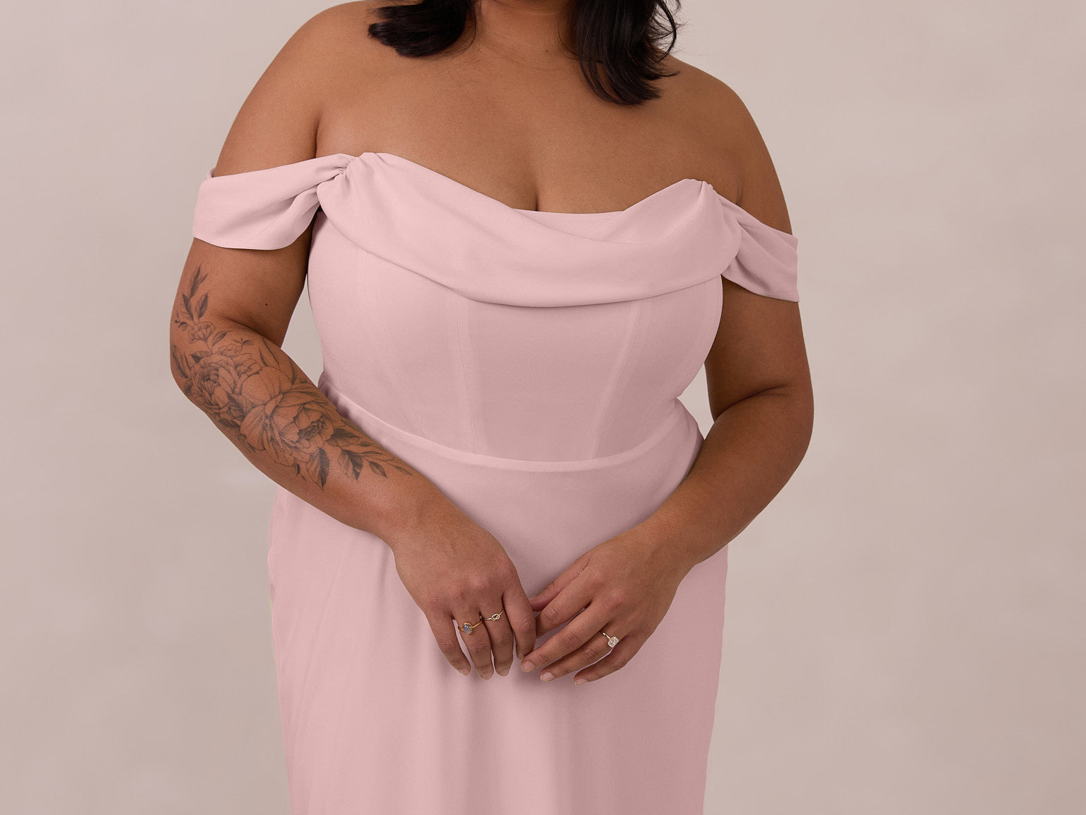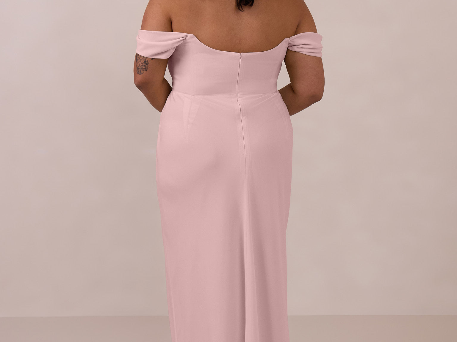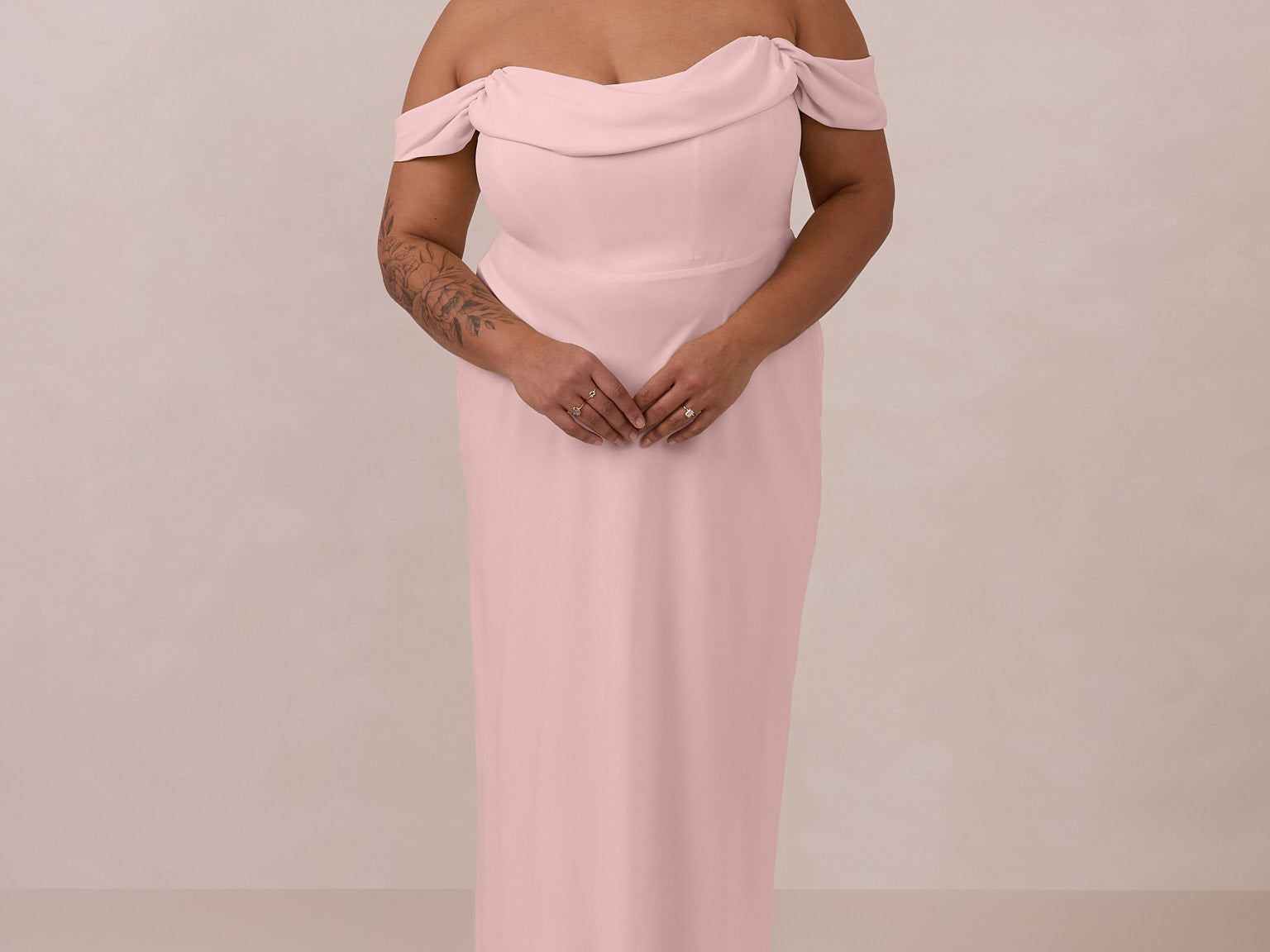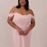 The Sutton Dress is the definition of effortless elegance. Designed with a soft draped chiffon neckline and delicate off-the-shoulder sleeves, it strikes the perfect balance between romance and refinement.