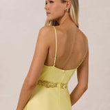 The Theodora is an elevated take on the classic slip dress, made from satin and cut on a bias for an elegant drape. It features a deep lace-trimmed neckline for a romantic touch. This full-length dress offers a fitted silhouette with adjustable straps and a discreet side zip, creating an effortlessly impactful look.